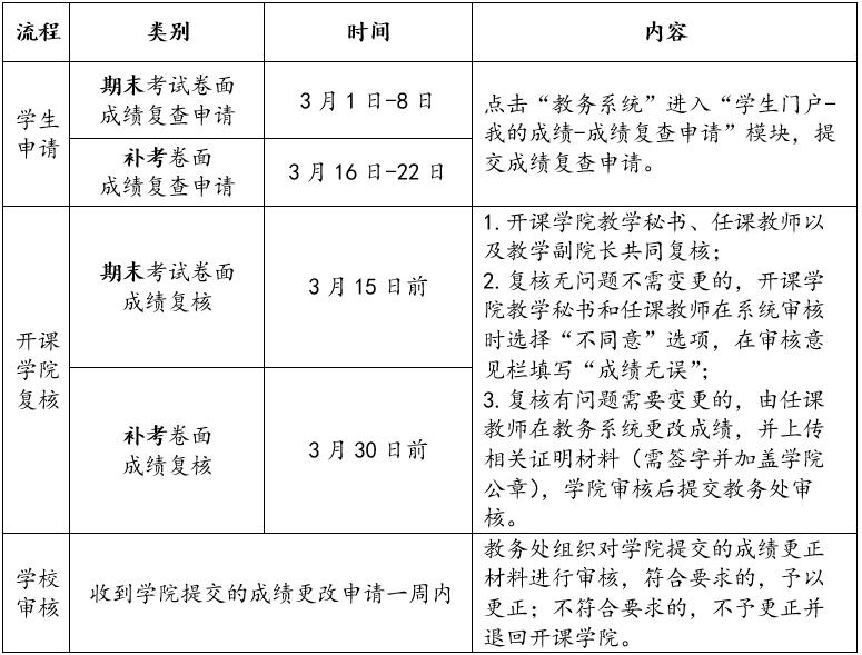 根据教学安排,2025-2026-1学期的课程成绩将于2026年1月31日前由任课教师录入教务系统,请及时查询各门课程成绩,如对成绩有疑义可申请成绩复查,不及格课程可参加补考(缓考与补考同时进行)。为保证成绩复查与补(缓)考工作顺利进行,现将有关事项通知如下: